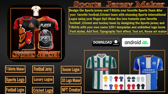 Sports Jersey Maker is a powerful and easy-to-use app designed for creating custom sports jerseys for teams, clubs, and individual players. Whether you're designing jerseys for football, basketball, cricket, or any other sport, this app simplifies the process with a variety of customization options.