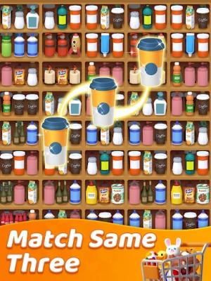 Triple Match Goods is a unique match-3 game! Sort snacks, drinks, and fruits in 3D fashion. Simply drag similar items to match them on the shelves.